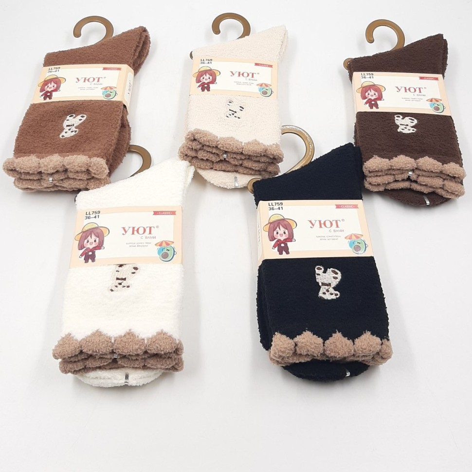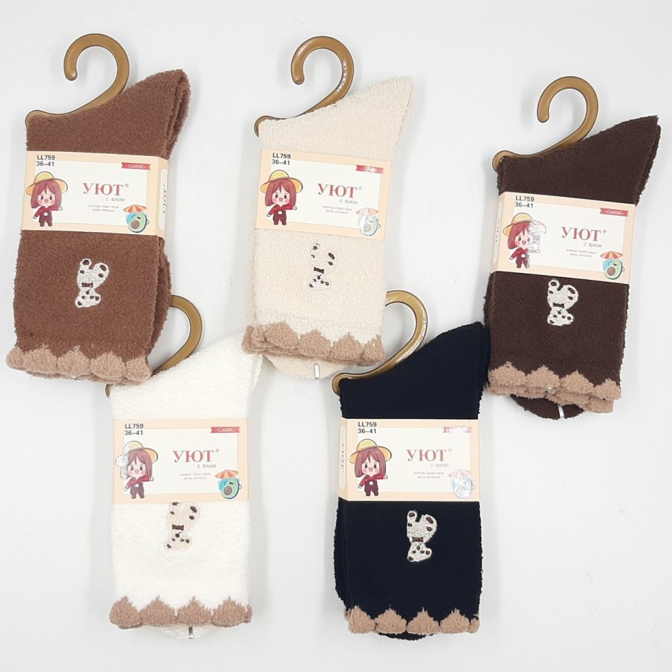 УЮТ Носки женские Очень Высокие "Шерсть Соболя" МИШКА (коричневые) (36-41) (LL-759-2) К10
