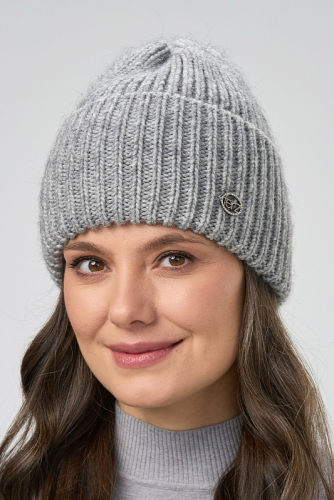 Берет-шапка одинарная с подворотом внутрь на резинке 6 см, выполнена из пряжи "Angora" с добавлением нити люрекса и пайеток.