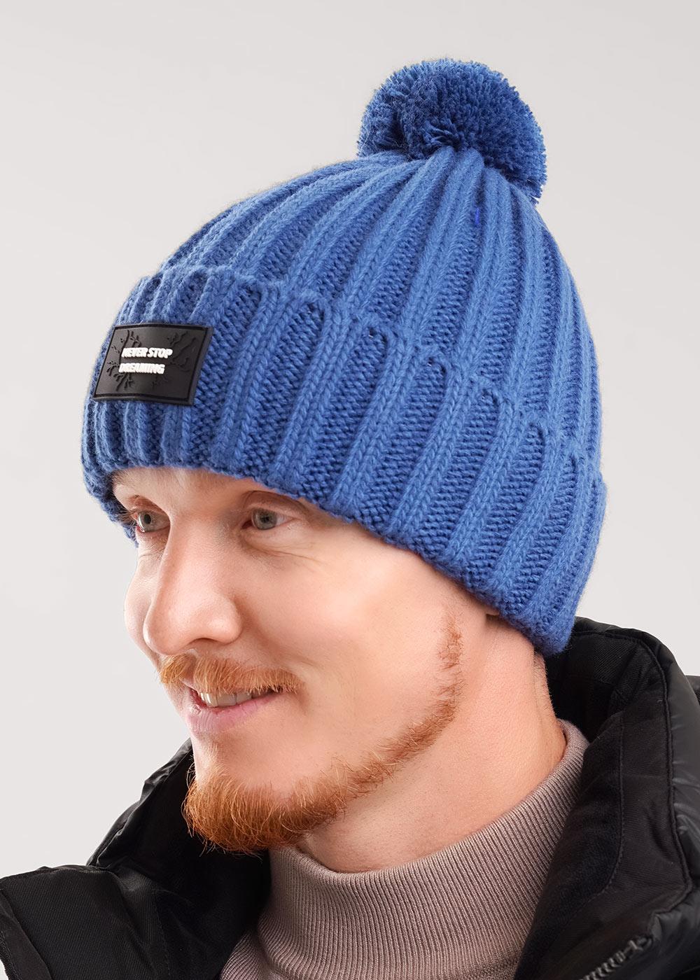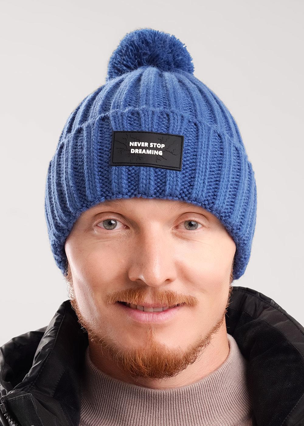Мужская шапка с помпоном, с отворотом, декорирована стильной нашивкой. Утепление флисом по всей голове. Отлично подойдёт для холодной зимы.