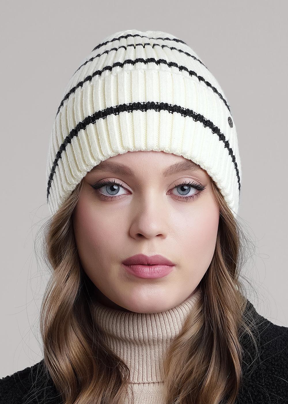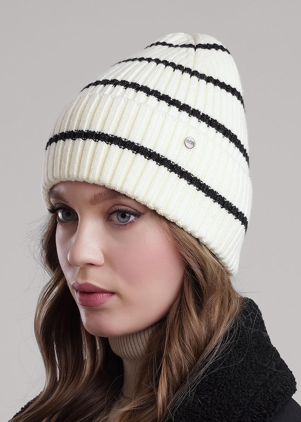CLE 454518вп Шапка женская 454518вп молочный/меланж чёрный
