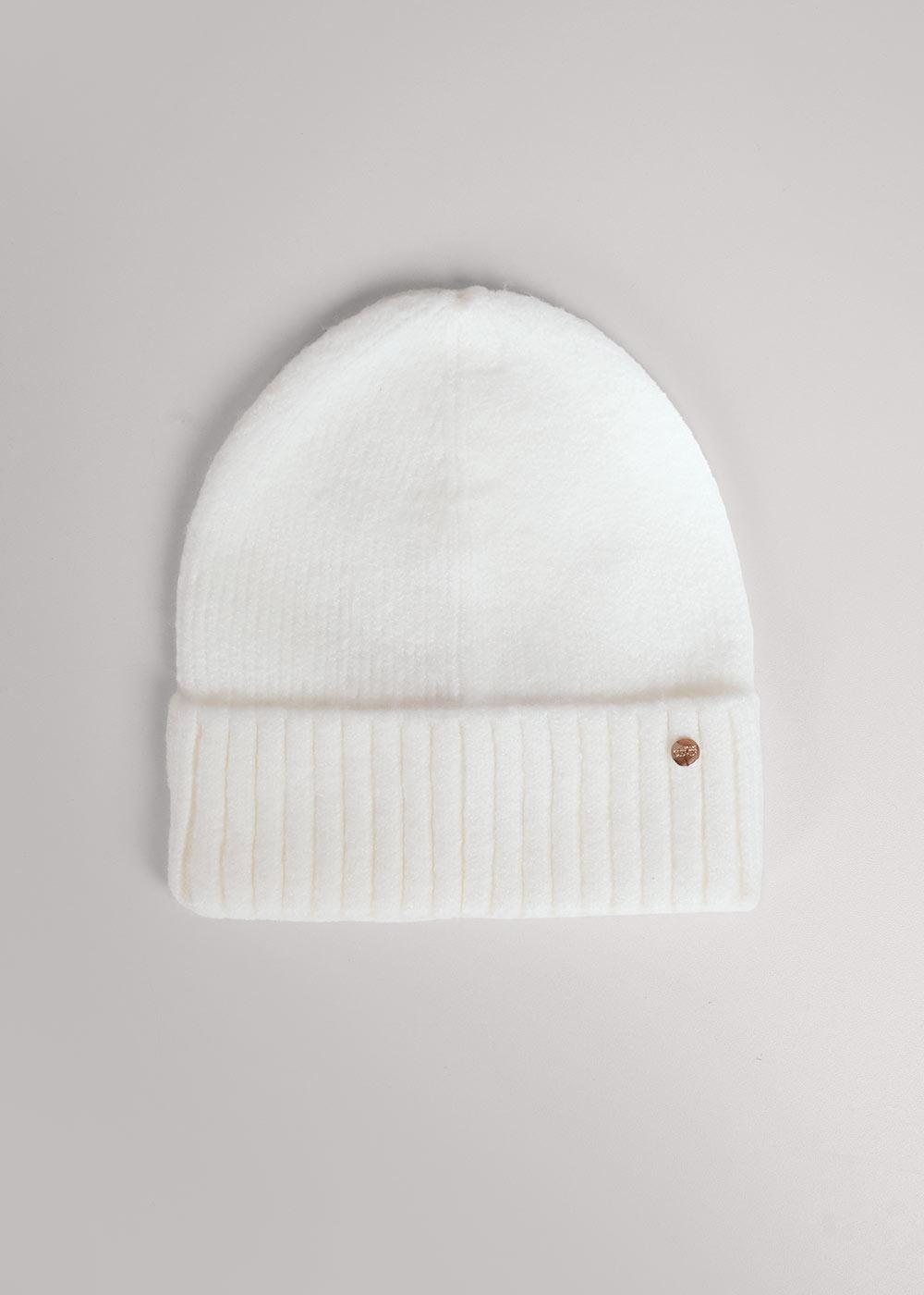 Шапка женская однослойная с отворотом, без подклада. Выполнена из высококачественной пряжи, декорирована стильной нашивкой. Станет не только отличной защитой от холода, но и модным аксессуаром.