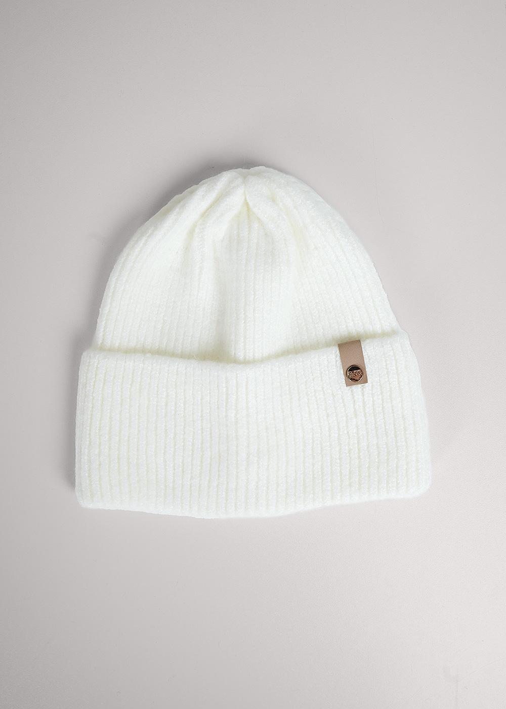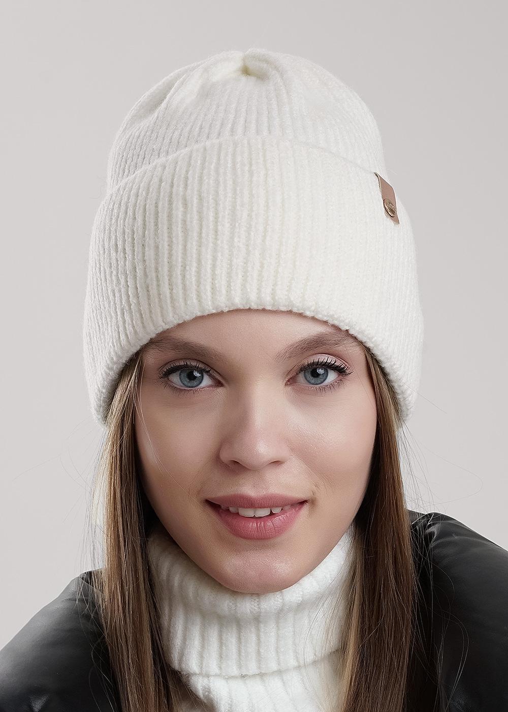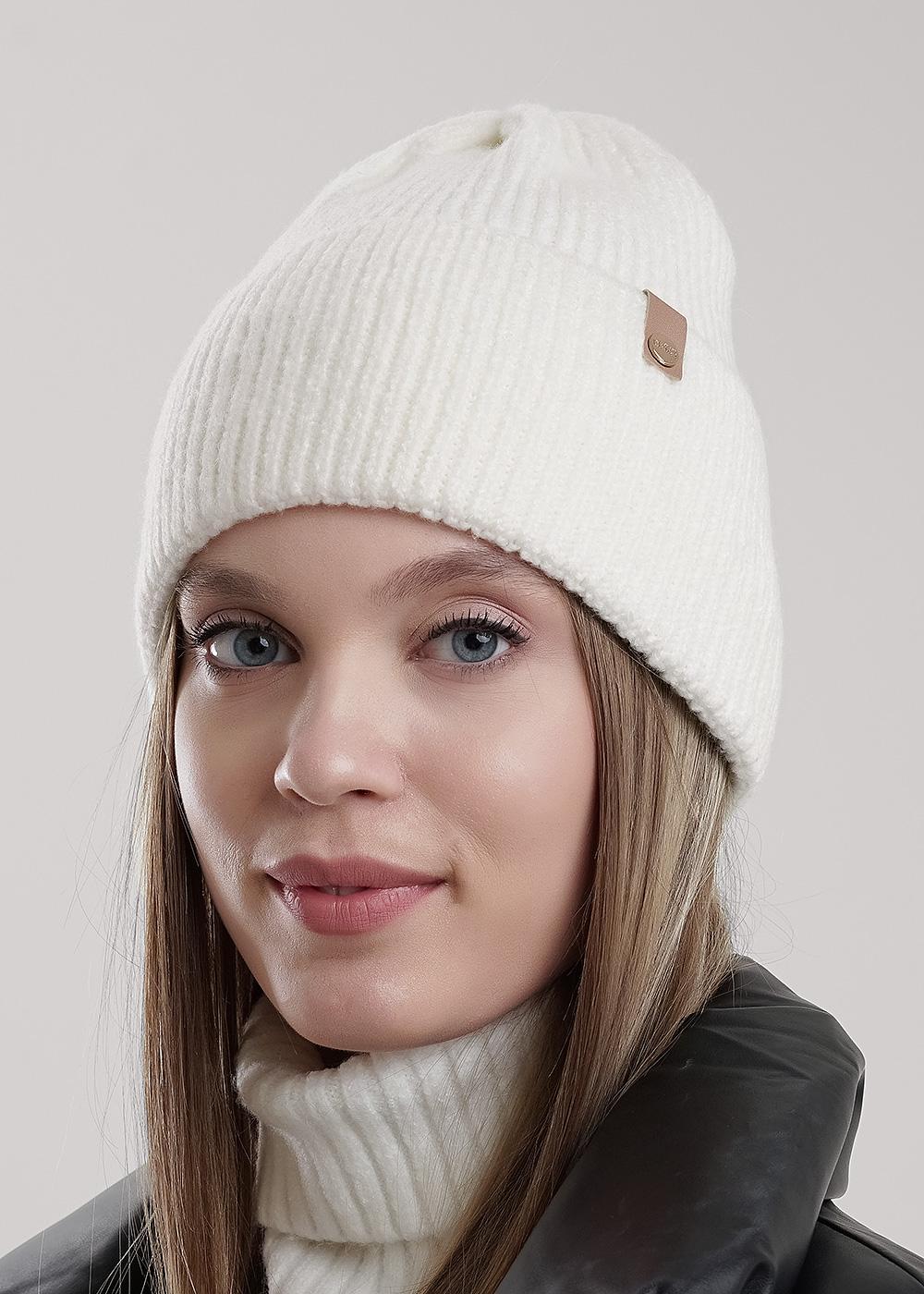 Шапка женская с отворотом, без подклада. Декорирована стильной нашивкой.