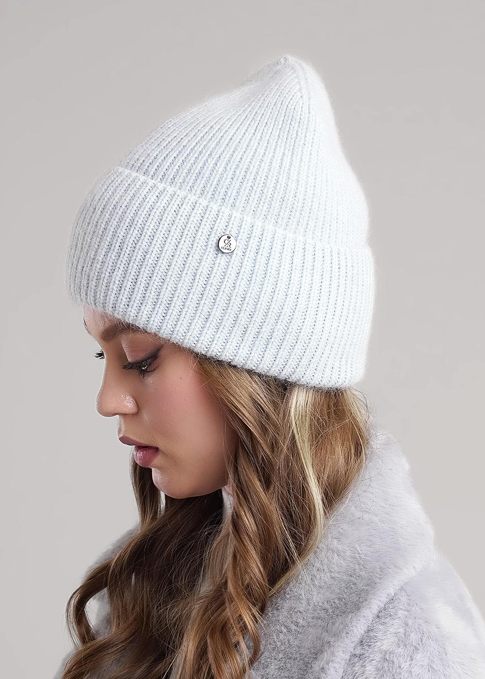 "Описание: Шапка женская с отворотом, с флисовой подкладкой, декорирована стильным украшением. Выполнена из мягкой пряжи с добавлением ангоры, благодаря чему хорошо сохраняет тепло. Отличный выбор для холодной зимы.