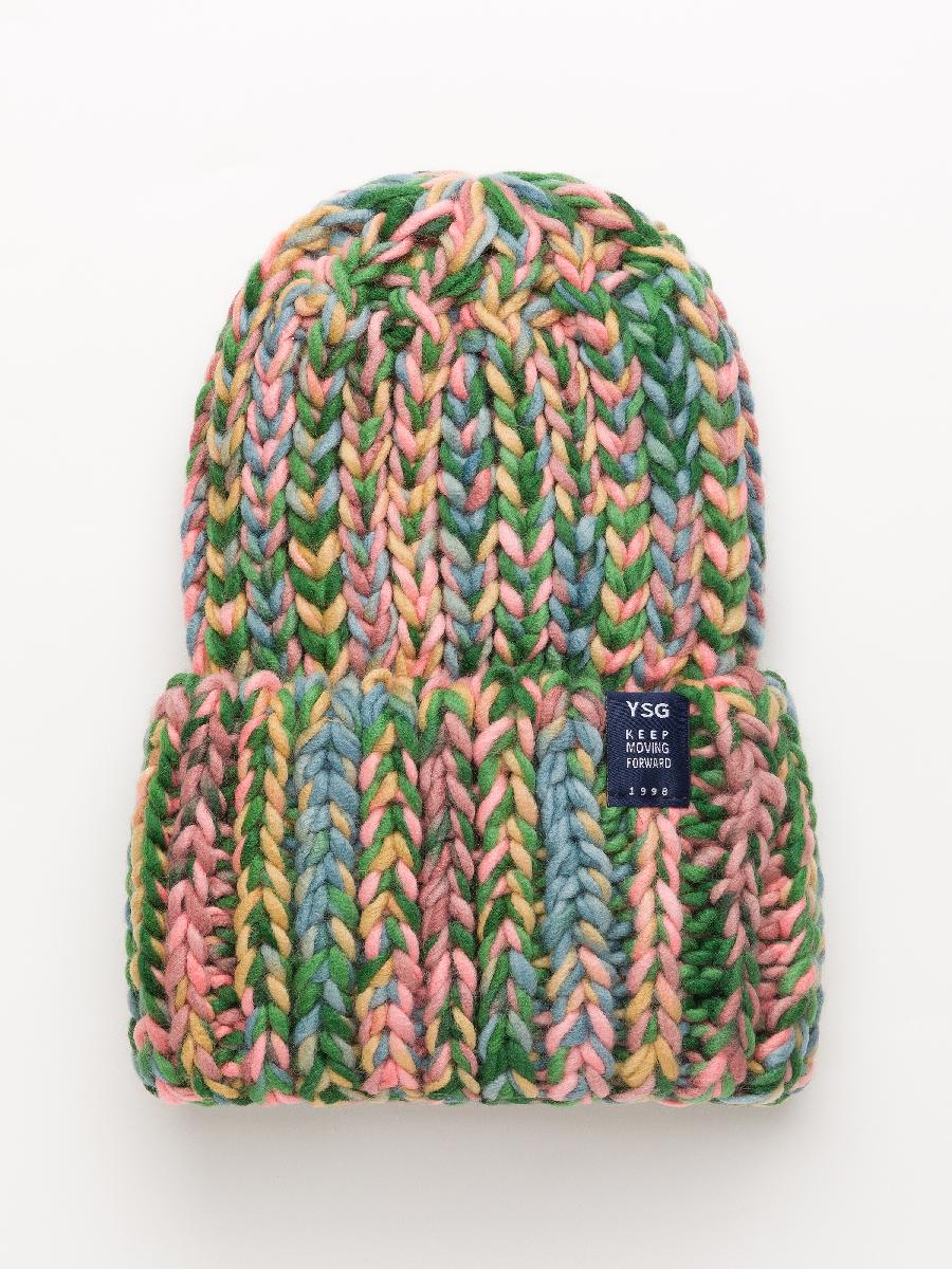 Шапка из разноцветной пряжи уже рекламирует сама себя. По просьбам клиентов модель представлена и в коллекции 2023/2024.  Продажи прошлого года показали привлекательность модели.