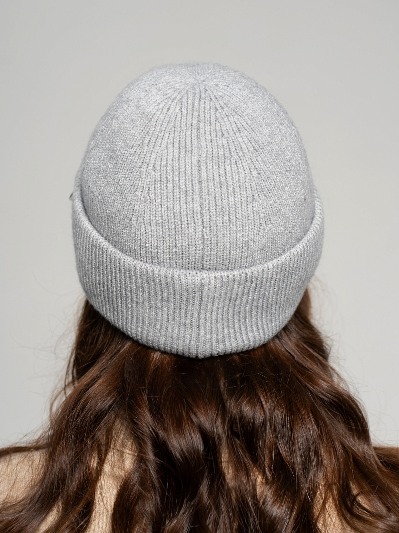 Шапка одинарная с кашемиром с подворотом. Украшена люверсами и кольцами.