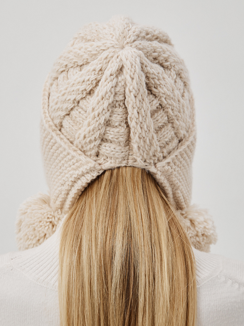 Ушанка с отворотом, под стяжку, с разрезом, декорирована помпонами, на флисе