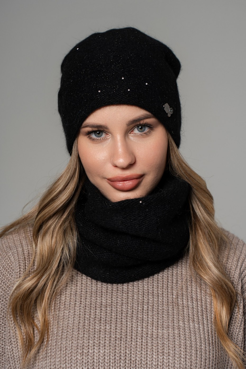 Комлект Шапка 54-58 см, двухслойная, с пайеткой, снуд