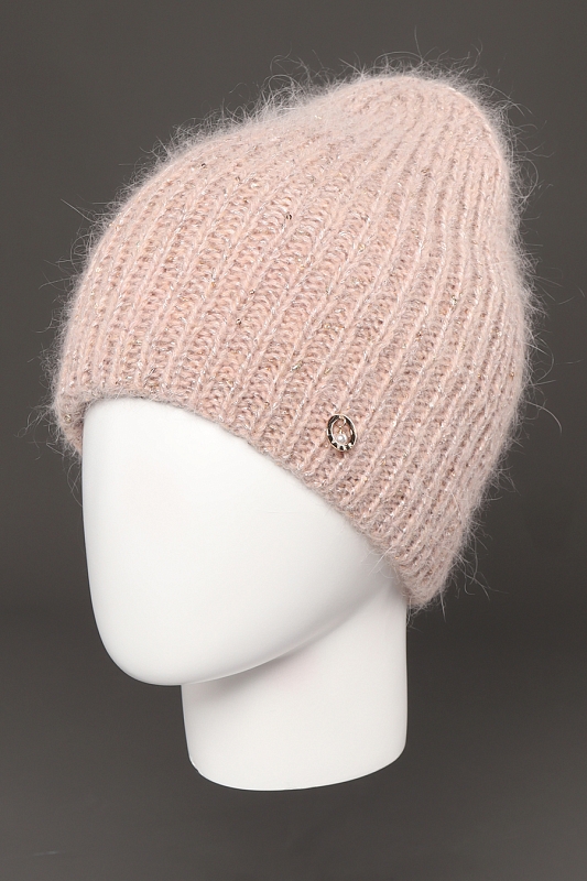 Шапка двойная (внутри провязана не доконца), удлиненной формы 25 см. Выполнена из мягкой пряжи "Angora" с добавлением нити люрекса и пайеток.