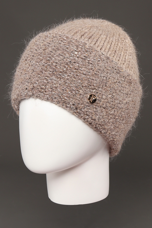 Шапка одинарная с широким отворотом 12 см. Отворот выполнен из пряжи "букле" с нитями метанита и пайетками.