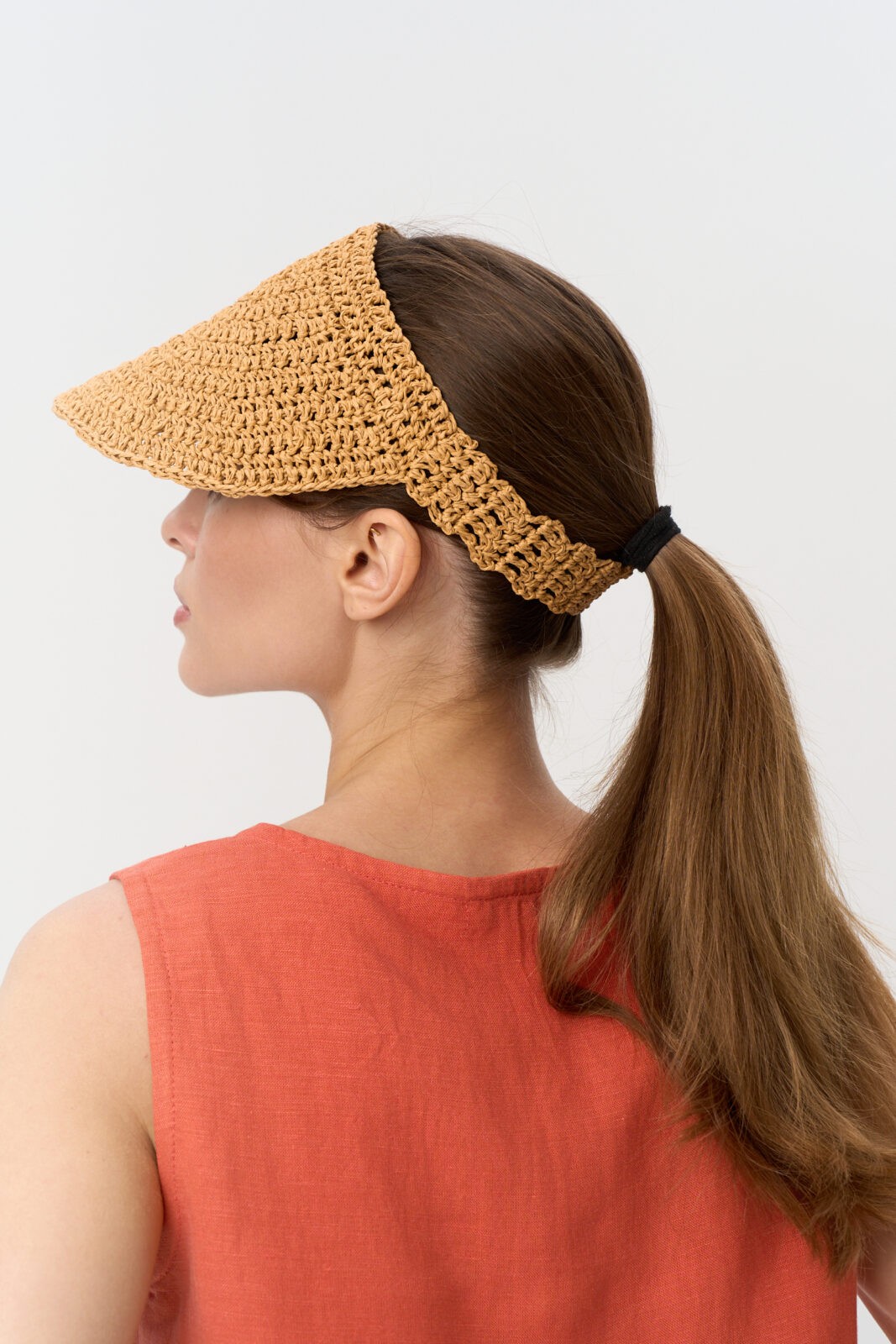 Козырек плетеный из рафии. Размер: 54-57. Ручная работа
