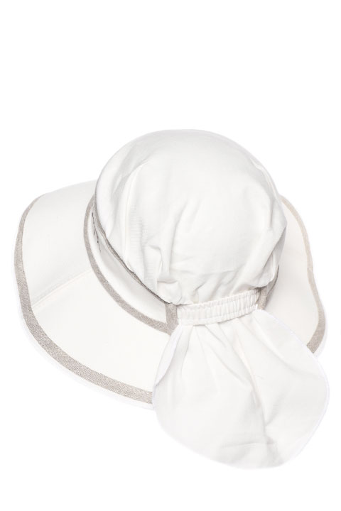 Панама женская выполнена из льняной ткани и хлопкового кружева. Резинка сзади обеспечивает плотность обтягивания панамы.