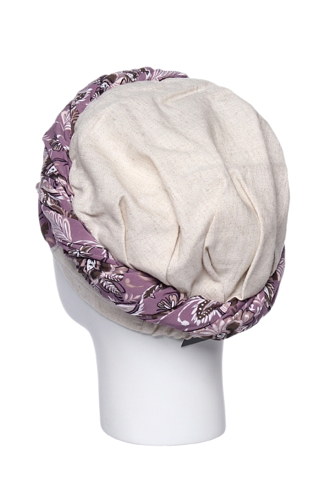 Шапка летняя выполнена из льняной ткани и вискозы (принт разный, смотрите фото). Резинка сзади регулирует плотность обтягивания шапки.