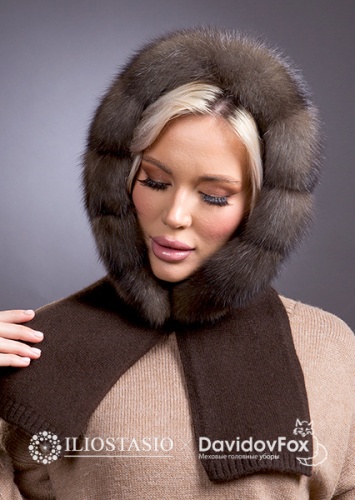 Капор кашемир тёмно-коричневый (marrone) соболь