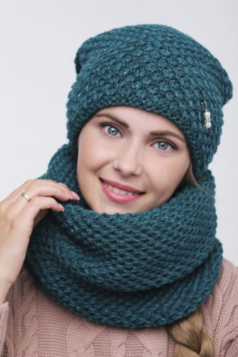 Комплект отличный по качеству: мягкий, приятный на ощупь и очень теплый. Маленькие паетки очень аккуратно подсвечивают. Хомут- в месте соединения придется подхватить ниточки, не критично. Цвет как на фото. Мне нравится.