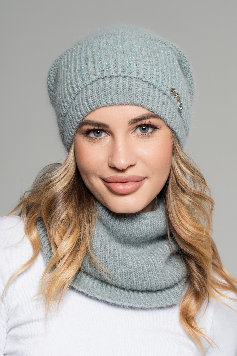 комплект- снуд, шапка 55-58 см, флис, с пайеткой
