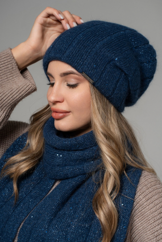 Комлект Шапка 54-58 см, двухслойная, с пайеткой, шарф
