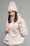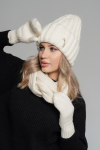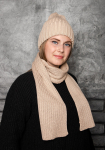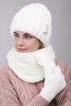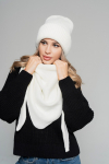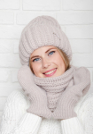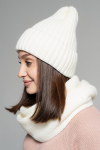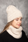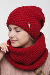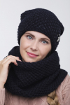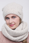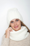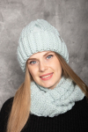 Товар отличного качества, аккуратная вязка, объёмный снуд, шапка внутри на флисе, теплая