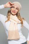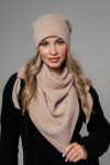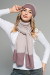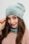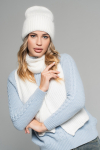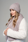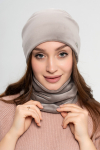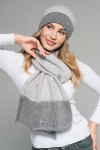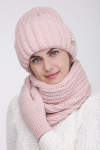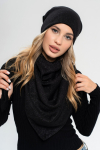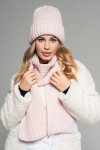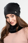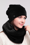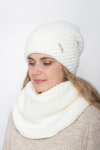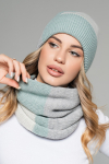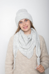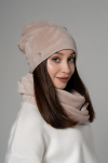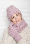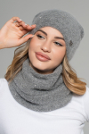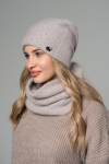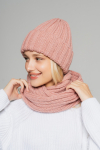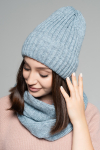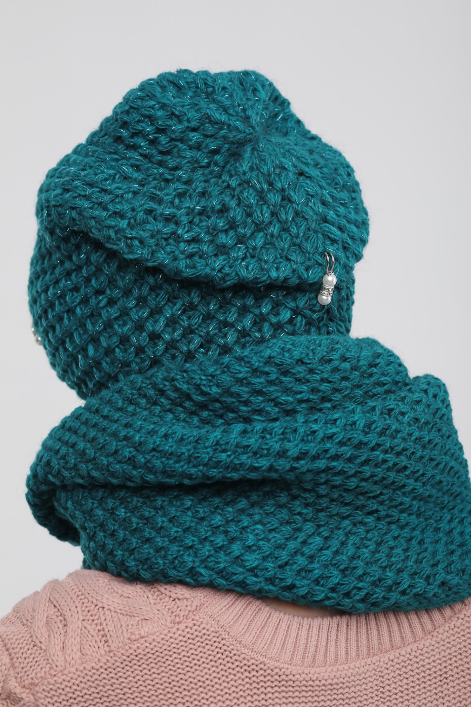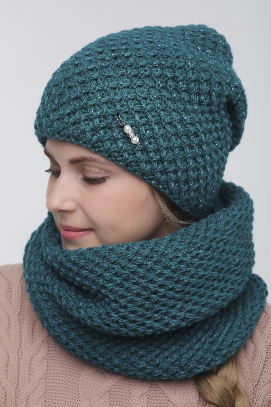 комплект понравился, шапка теплая, снуд довольно широкий, плотно прилегает к шее. Шапка с люрексом, снуд без люрекса.
