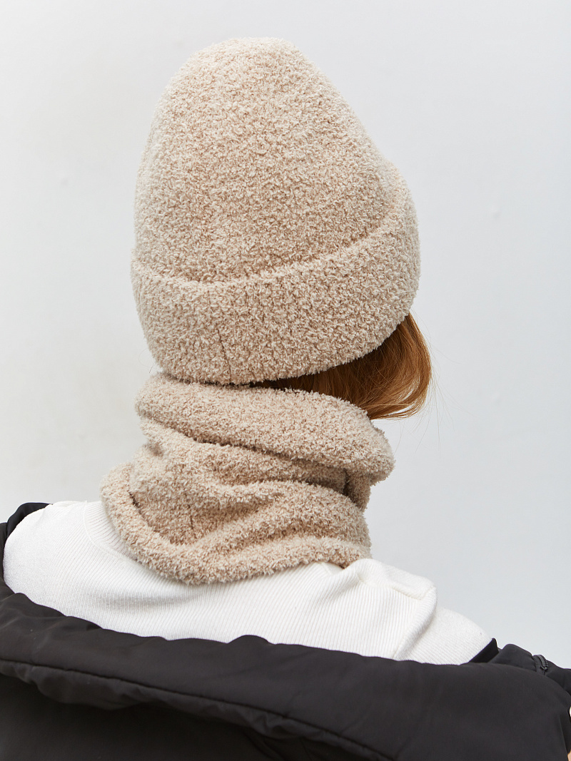 Комплект двойной с шерстью мериноса. Базовая модель с отворотом из плюша. Не упустите тренд! Обязательно добавляйте изделия с плюшем в свои коллекции головных уборов.