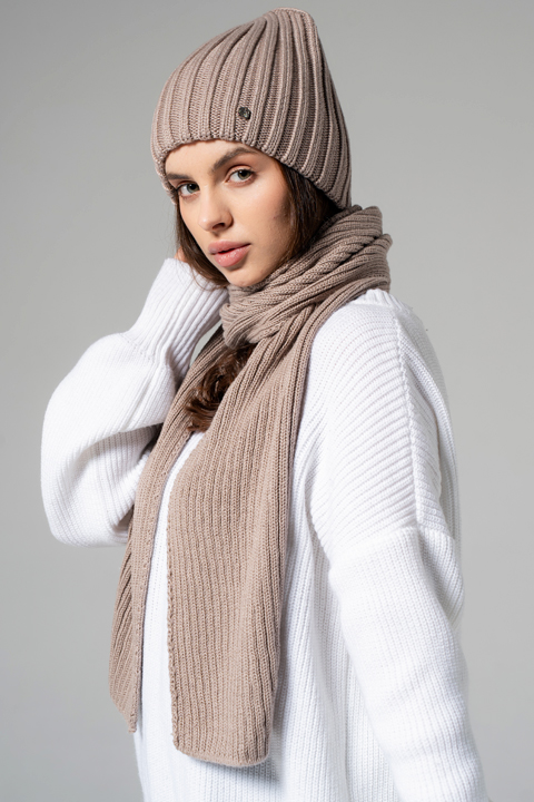 Комплект: шапка и шарф. Выполнен из сочетания хлопка (премиум качества). Вязка плотная и эластичная имеет мягкую текстуру. Подходит для любого возраста.