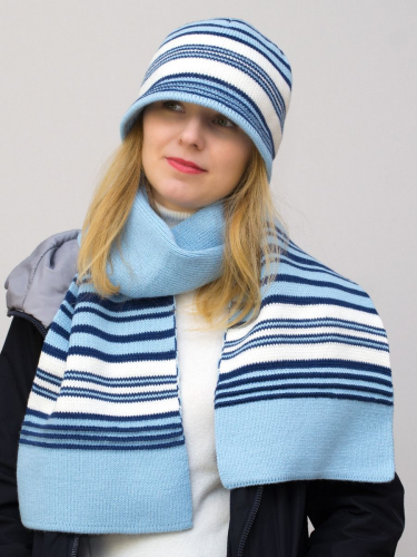 Комплект шляпа+шарф женский весна-осень Band (Цвет голубой), размер 54-56, шерсть 30%