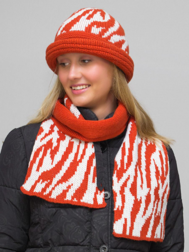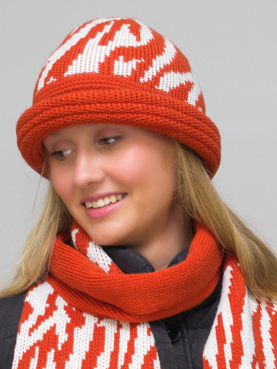 Комплект шляпа+шарф женский весна-осень Mariana (Цвет оранжевый), размер 56-58, шерсть 30%