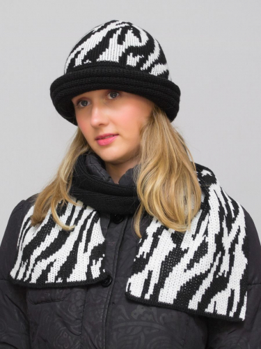 Комплект шляпа+шарф женский весна-осень Mariana (Цвет темно-синий), размер 56-58, шерсть 30%