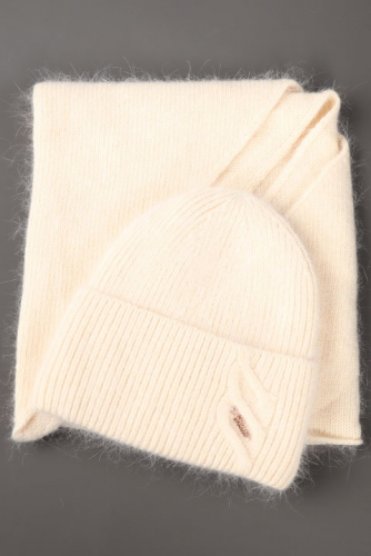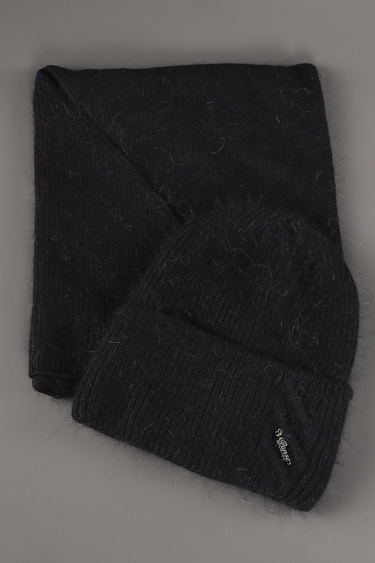Комплект шапка с косынкой. Шапка: с отворотом на флисовом подкладе, размер 56-58. Косынка: длина 103 см, ширина 62 см, одинарная.