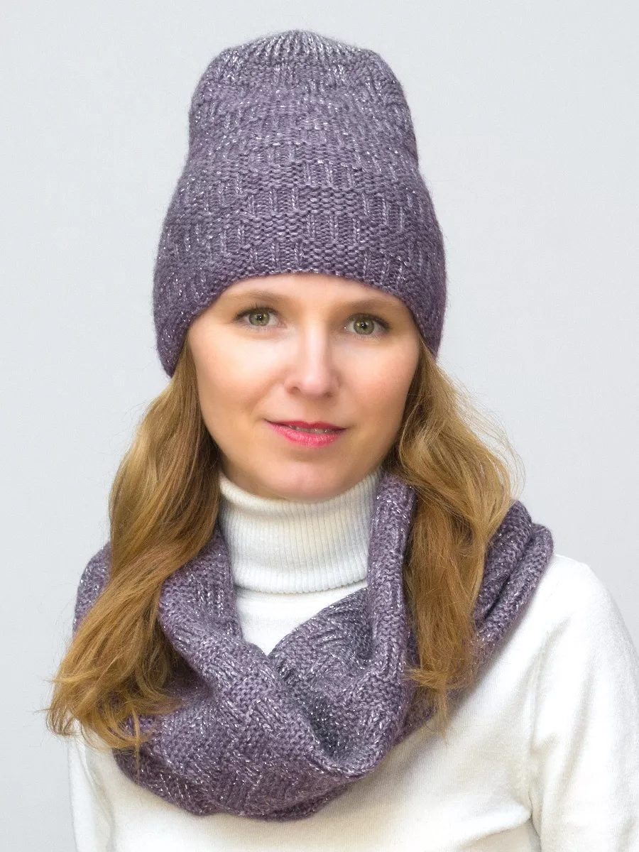 Комплект женский весна-осень шапка+снуд Лилиан (Цвет сиреневый), размер 52-54, шерсть 30%