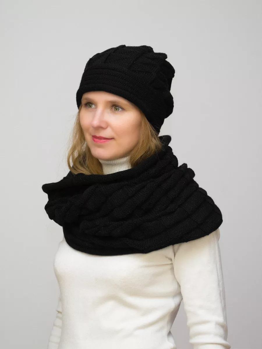 Комплект женский весна-осень шапка+снуд Милиса (Цвет черный), размер 56-58, шерсть 50%