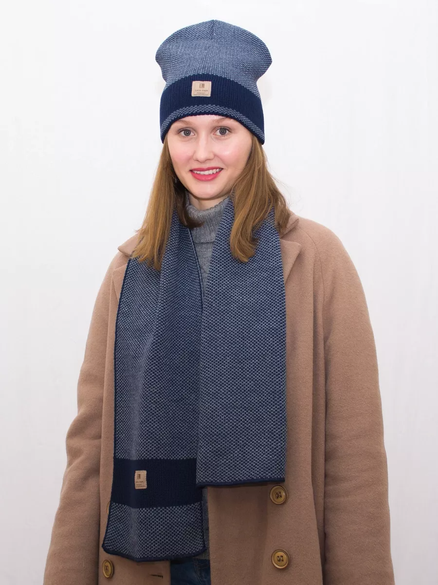 Комплект женский весна-осень шапка+шарф Ариана (Цвет синий), размер 56-58, шерсть 30%