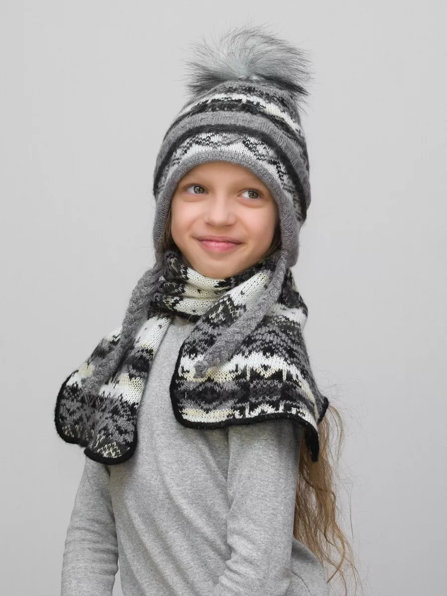 Комплект зимний для девочки шапка+шарф Анютка (Цвет черный), размер 52-54, шерсть 70%