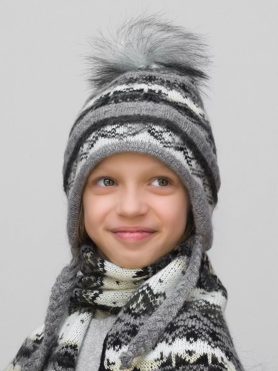 Комплект зимний для девочки шапка+шарф Анютка (Цвет черный).