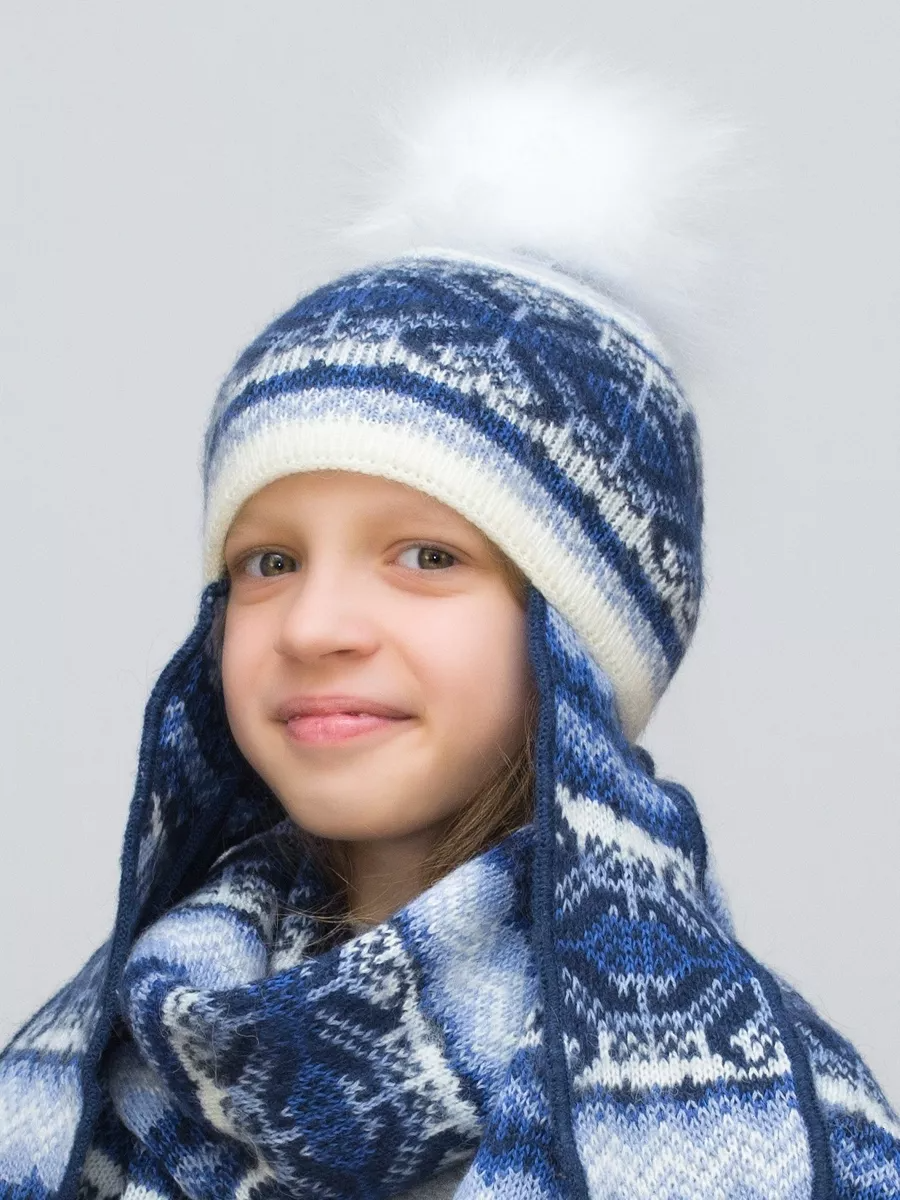 Комплект зимний для девочки шапка+шарф Мурзилка (Цвет синий), размер 52-54, шерсть 50%, мохер 30%