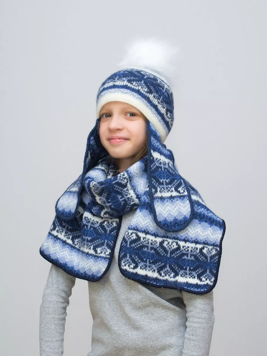 Комплект зимний для девочки шапка+шарф Мурзилка (Цвет синий).