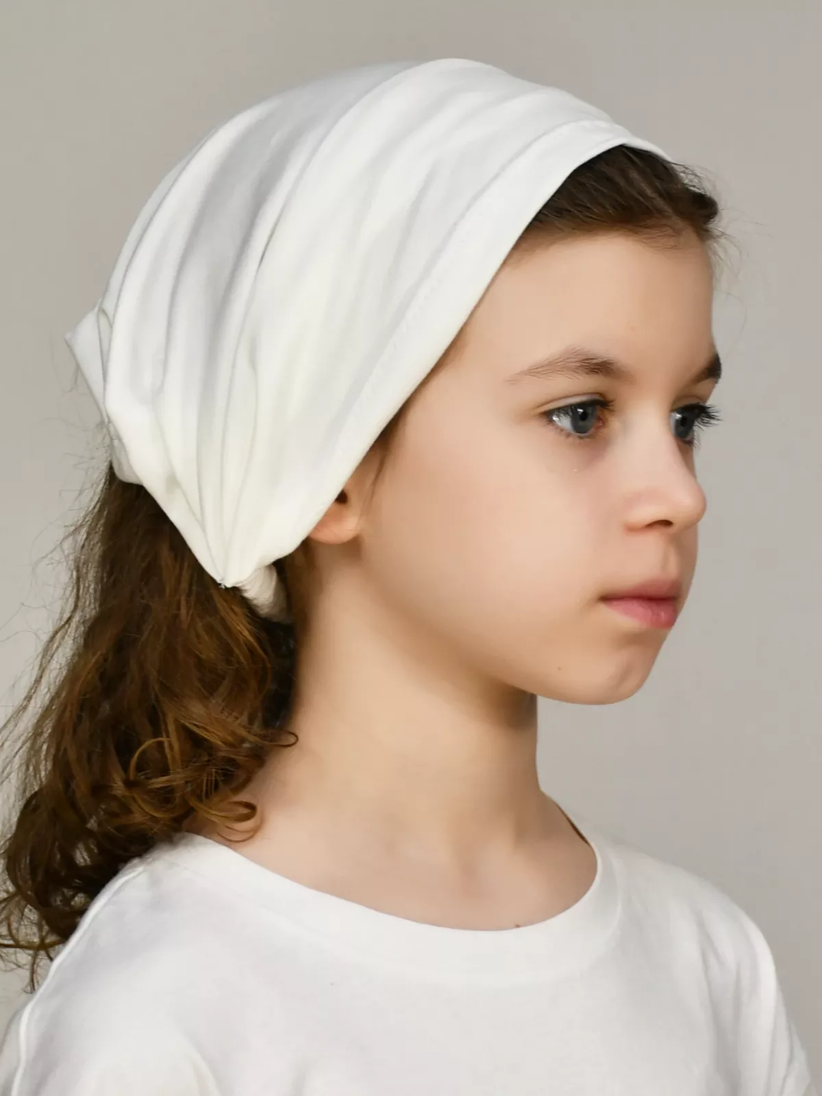 Косынка-повязка хлопковая для девочки (Цвет молочный).