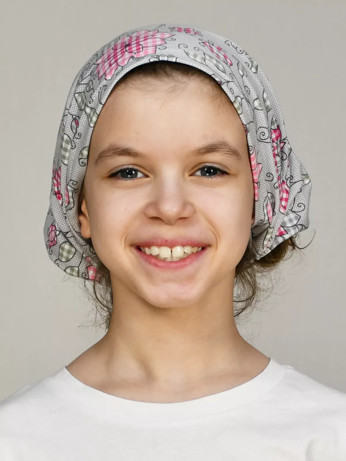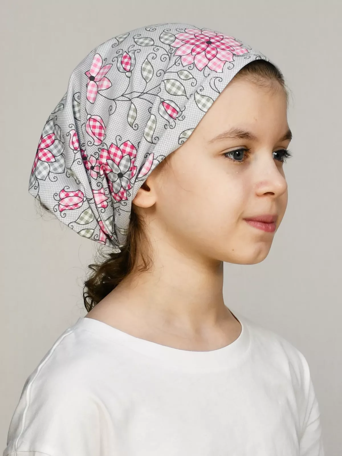 Косынка-повязка хлопковая для девочки Цветы в клетку.