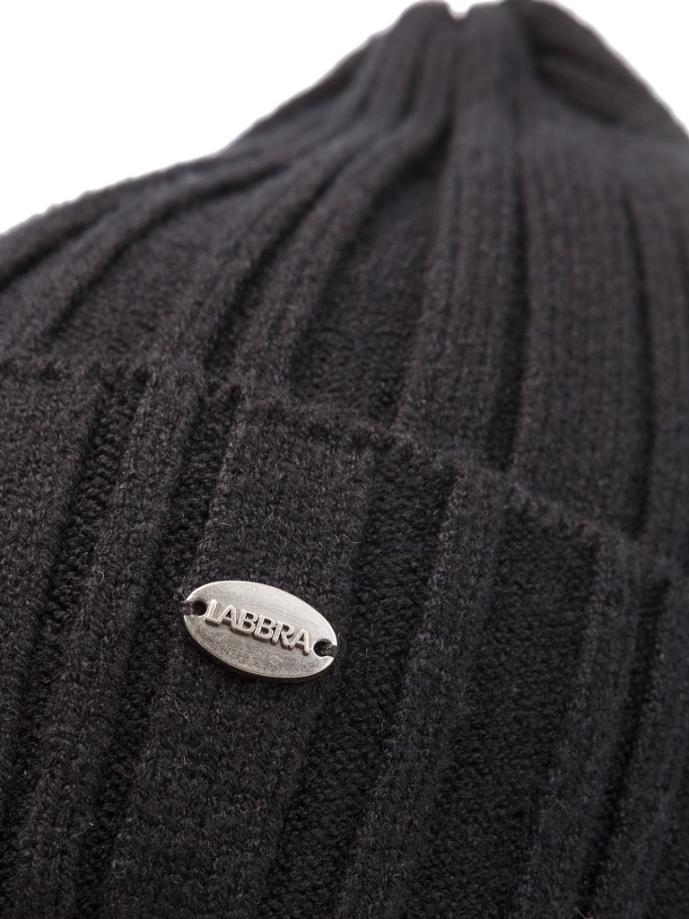 Модная шапка бини с отворотом выполнена из высококачественной  пряжи с кашемиром в составе. Необычная вязка резинкой разного размера, увеличенный конус в верхней части. Аксессуар выполнен как в модных цветах, так и в базовых.  Лицевую часть шапки украшает фирменная фурнитура с логотипом Labbra.