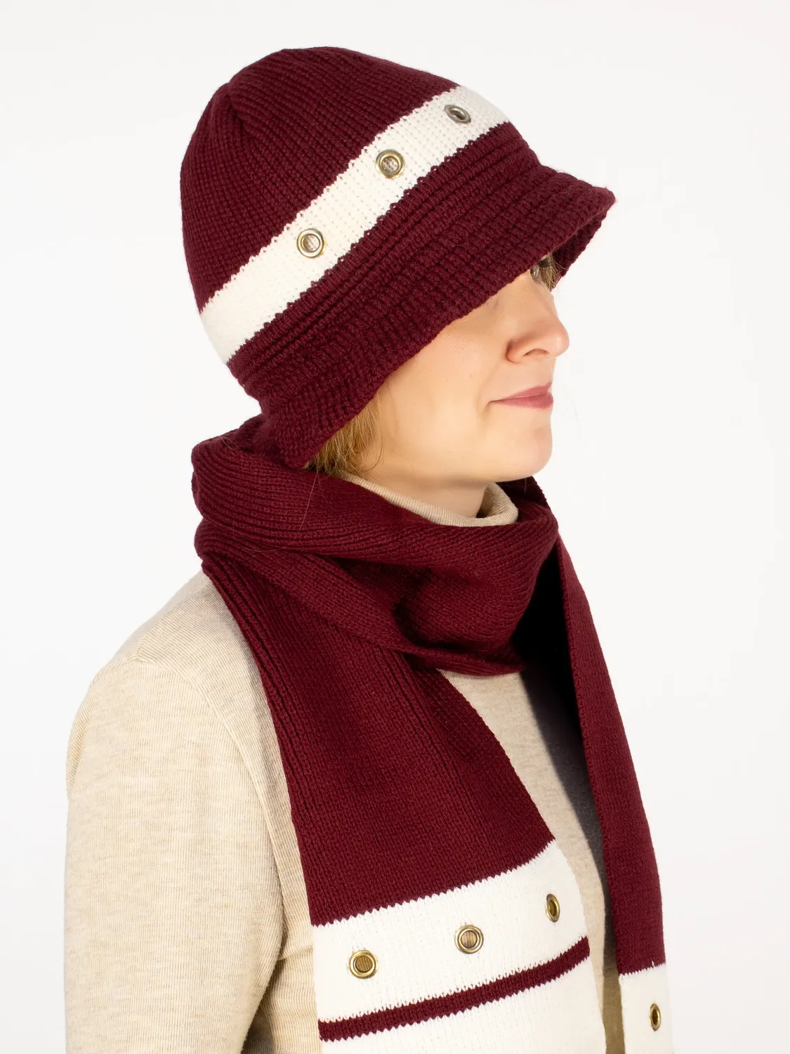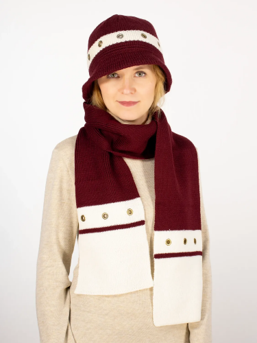 Комплект шляпа+шарф женский весна-осень Элеонора (Цвет вишневый).