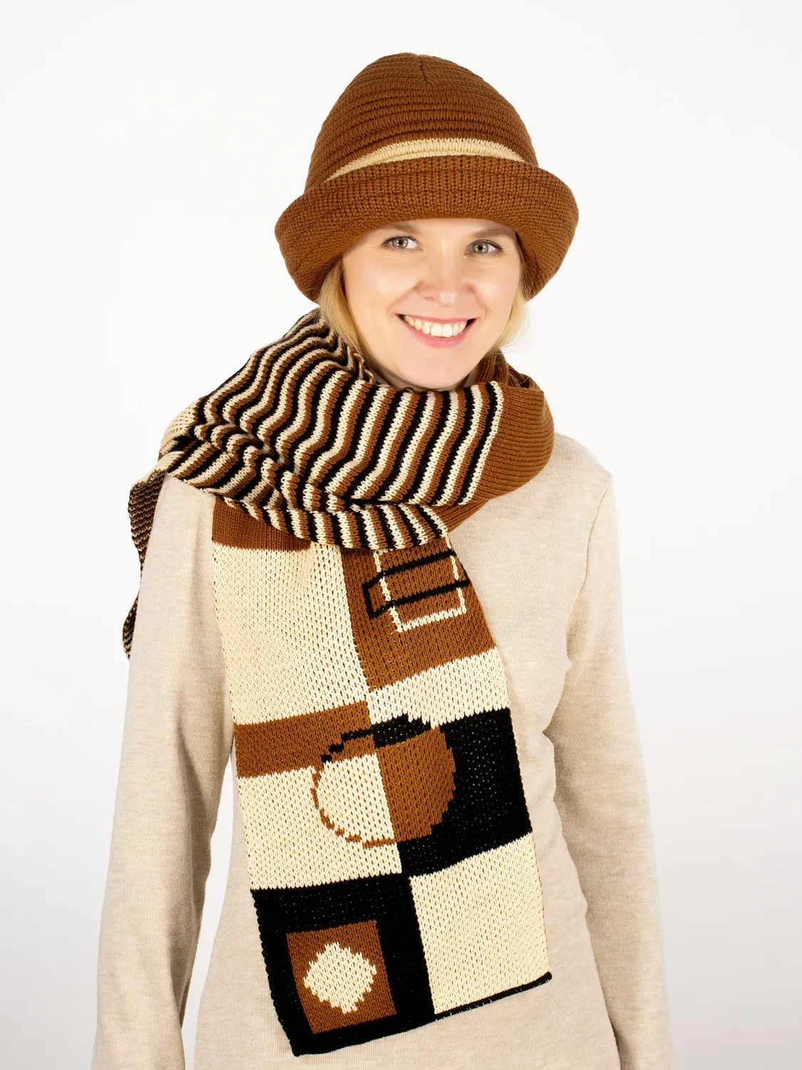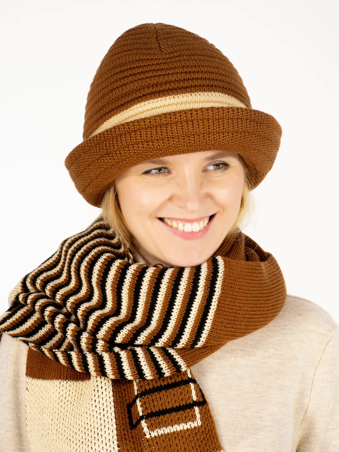 Комплект шляпа+шарф женский весна-осень Mario (Цвет коричневый).