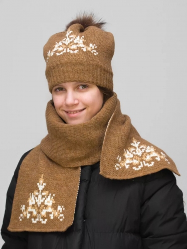 Комплект зимний для девочки шапка+шарф Снежинка (Цвет светло-коричневый), размер 52-54, шерсть 70%