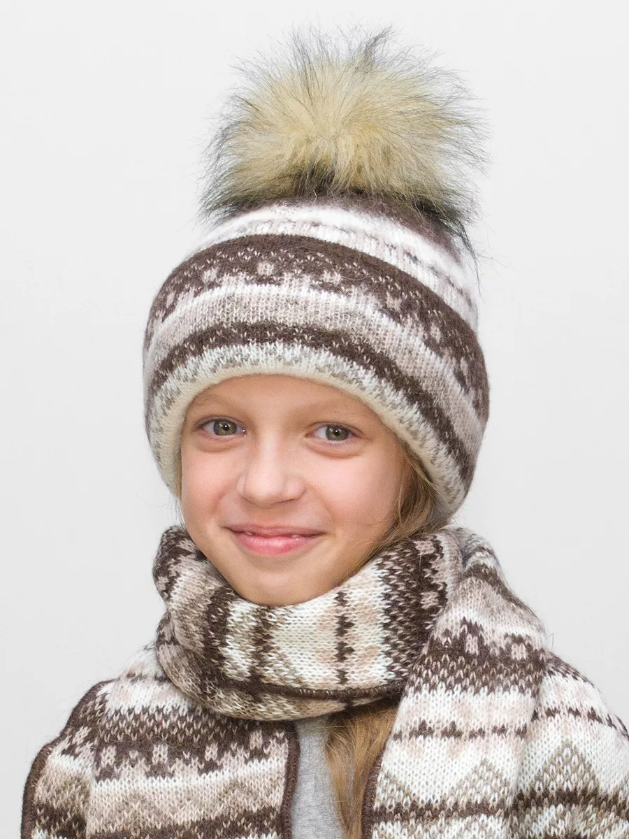 Комплект зимний для девочки шапка+шарф Ульяна (Цвет коричневый), размер 54-56, шерсть 70%