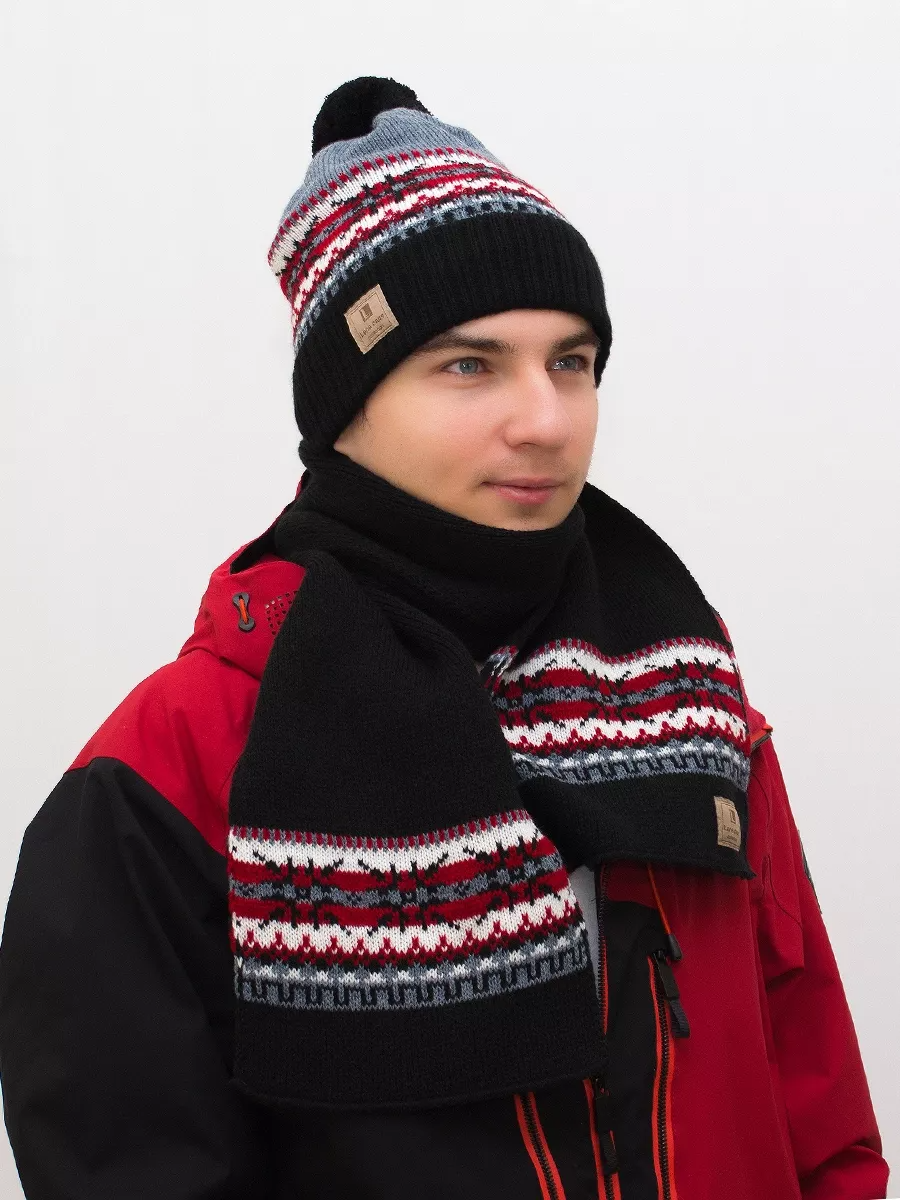 Комплект зимний мужской шапка+шарф Гарри (Цвет красный).