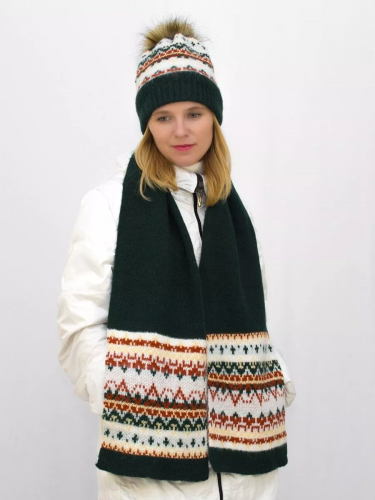 Комплект зимний женский шапка+шарф Алэйна (Цвет зеленый).