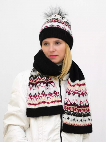 Комплект зимний женский шапка+шарф Алэйна (Цвет зеленый), размер 54-56, шерсть 70%