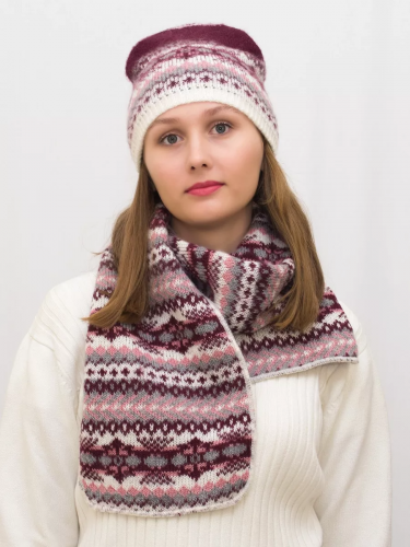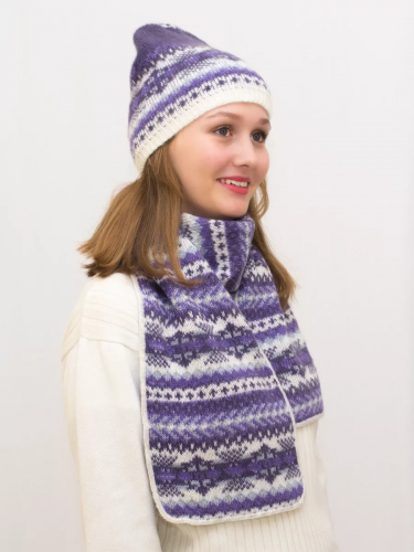 Комплект зимний женский шапка+шарф Анабель (Цвет фиолетовый), размер 56-58, шерсть 50%, мохер 30%
