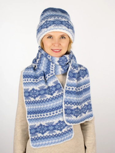 Комплект зимний женский шапка+шарф Дарья (Цвет голубой), размер 56-58, шерсть 50%, мохер 30%