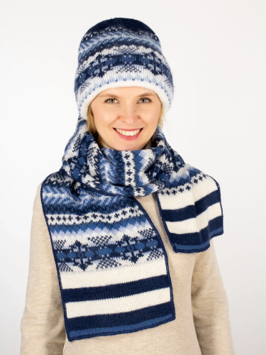 Комплект зимний женский шапка+шарф Дарья (Цвет синий), размер 56-58, шерсть 50%, мохер 30%