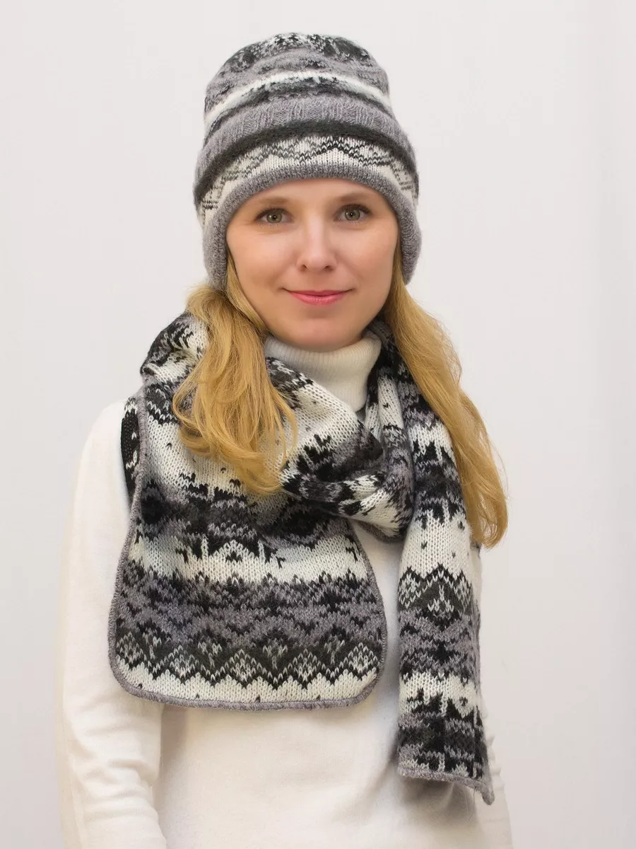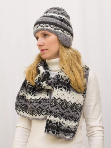 Комплект зимний женский шапка+шарф Мохер (Цвет серый/черный).