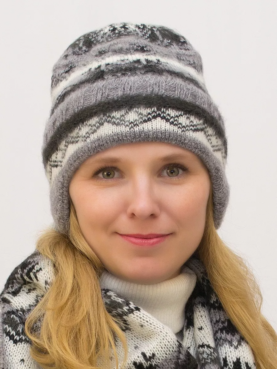 Комплект зимний женский шапка+шарф Мохер (Цвет серый/черный), размер 54-56, мохер 50%